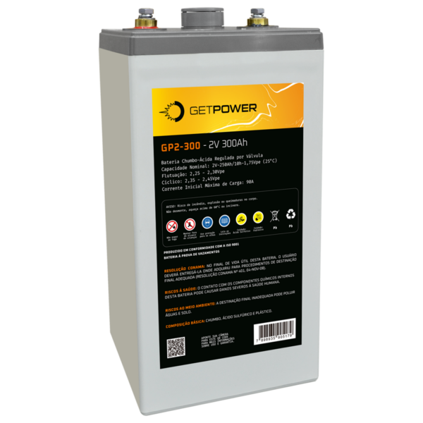A Bateria Chumbo-Ácida Estacionária VRLA da Série Getpower GP 2-300, uma solução de energia confiável e de alta performance para uma variedade de aplicações. Equipada com a avançada tecnologia AGM (Absorbed Glass Mat), esta bateria se destaca por seu eletrólito absorvido em manta de microfibra de vidro, oferecendo uma operação segura e eficiente, regulada por válvula (VRLA – Valve Regulated Lead Acid). Com uma eficiência de recombinação de gases superior a 99%, a Bateria Getpower GP/AGM-2V redefine os padrões de eficiência e confiabilidade.